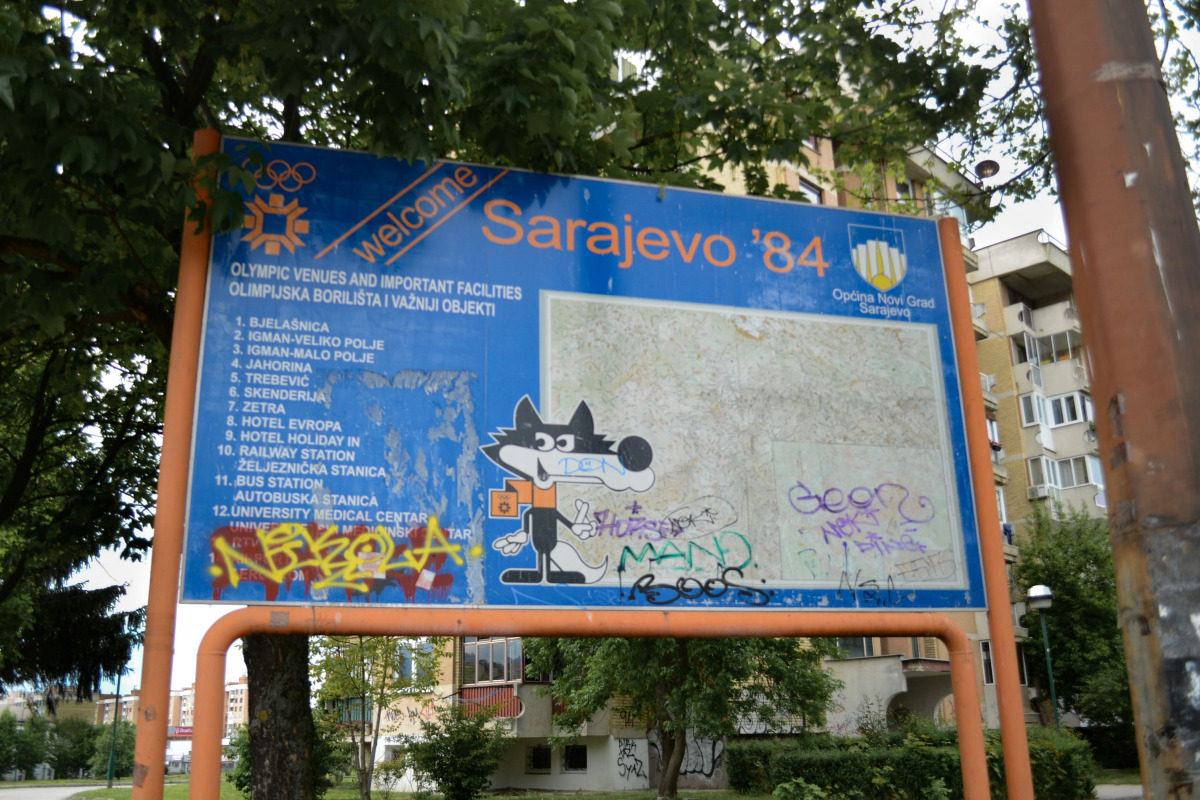 Le panneau destiné aux athlètes et à la presse, dans l'ancien village olympique, semblait encore s'adresser aux passants. Le loup Vučko et le flocon orange, mascotte et symbole de ces Jeux Olympiques d'hiver de 1984, se dressaient toujours aux détours de certaines rues, comme si l'atmosphère des Jeux avait résisté au temps et à la guerre. Toutes les infrastructures olympiques, situées plus ou moins proche de la ligne de front, avaient été transformées par la guerre.
