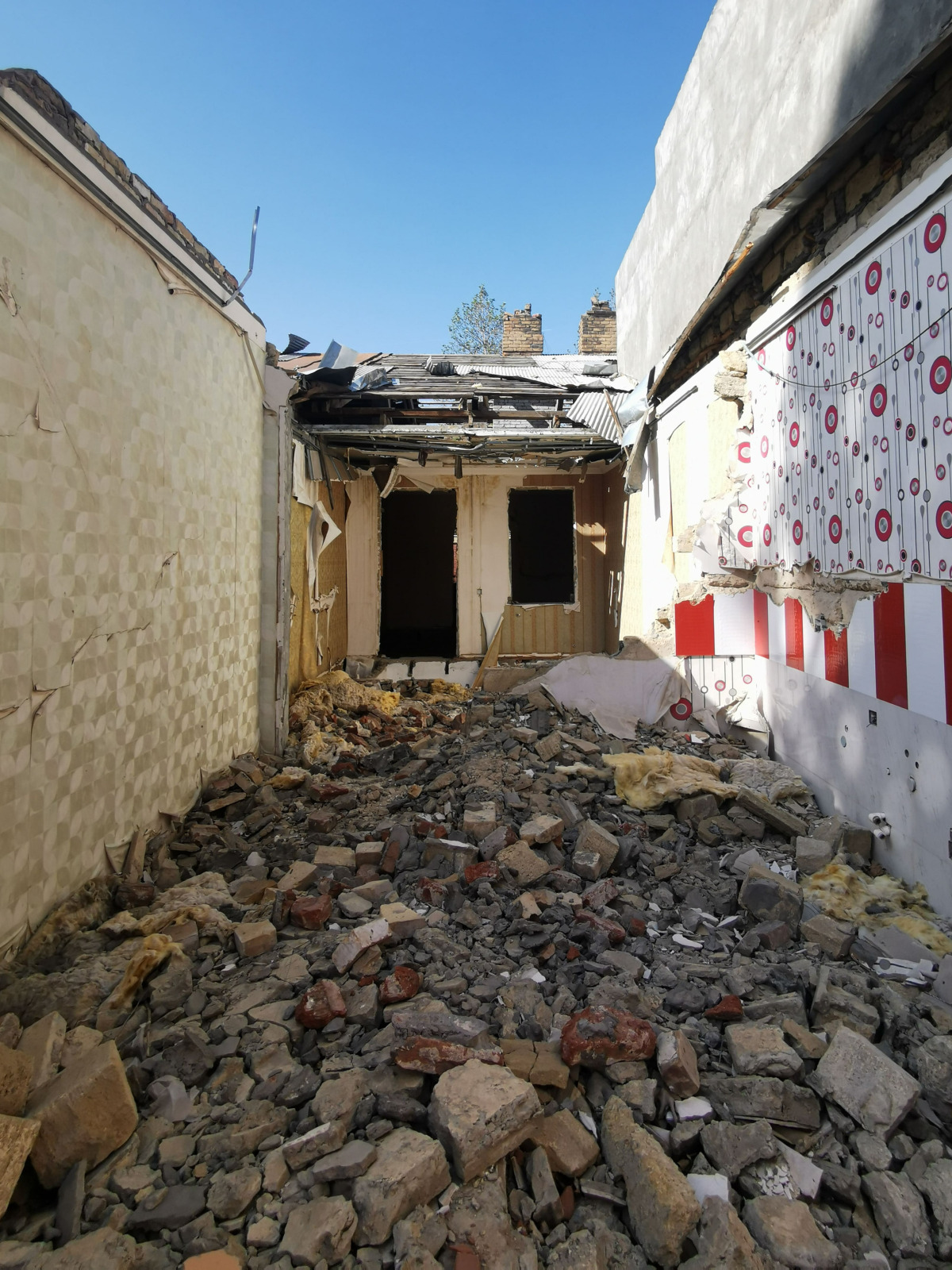 Le lieu n'était présenté que par un panneau qui commémorait les victimes des bombardements. J'apprendrai que, quelques mois après mon passage, les maisons avaient été démolies et un complexe mémoriel avait été inauguré.