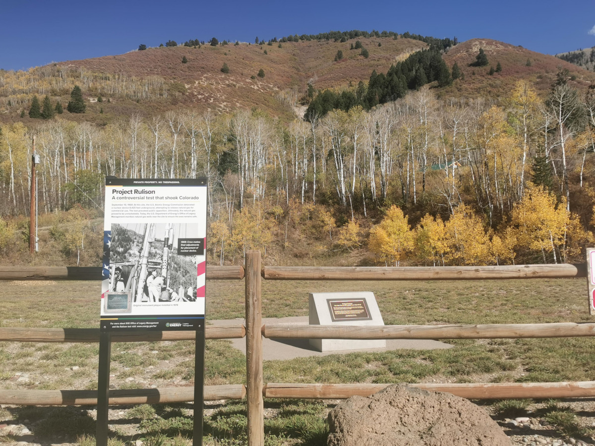 Le site de l'explosion nucléaire de Rulison était une propriété privée, peut-être celle du Department of Energy. Un panneau succint donnait des renseignements au sujet du test, bien que le lieu fut peu accessible.