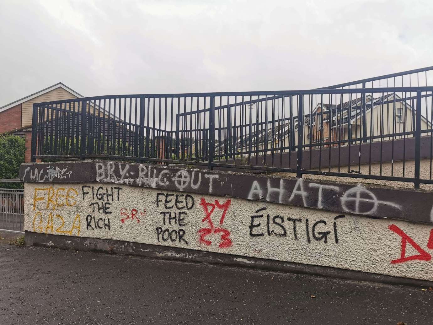 Les fresques côtoyaient des messages signés par des organisations socialistes ou révolutionnaires. Aujourd'hui, le Bogside restait un symbole des luttes anti-coloniales et anti-capitalistes.