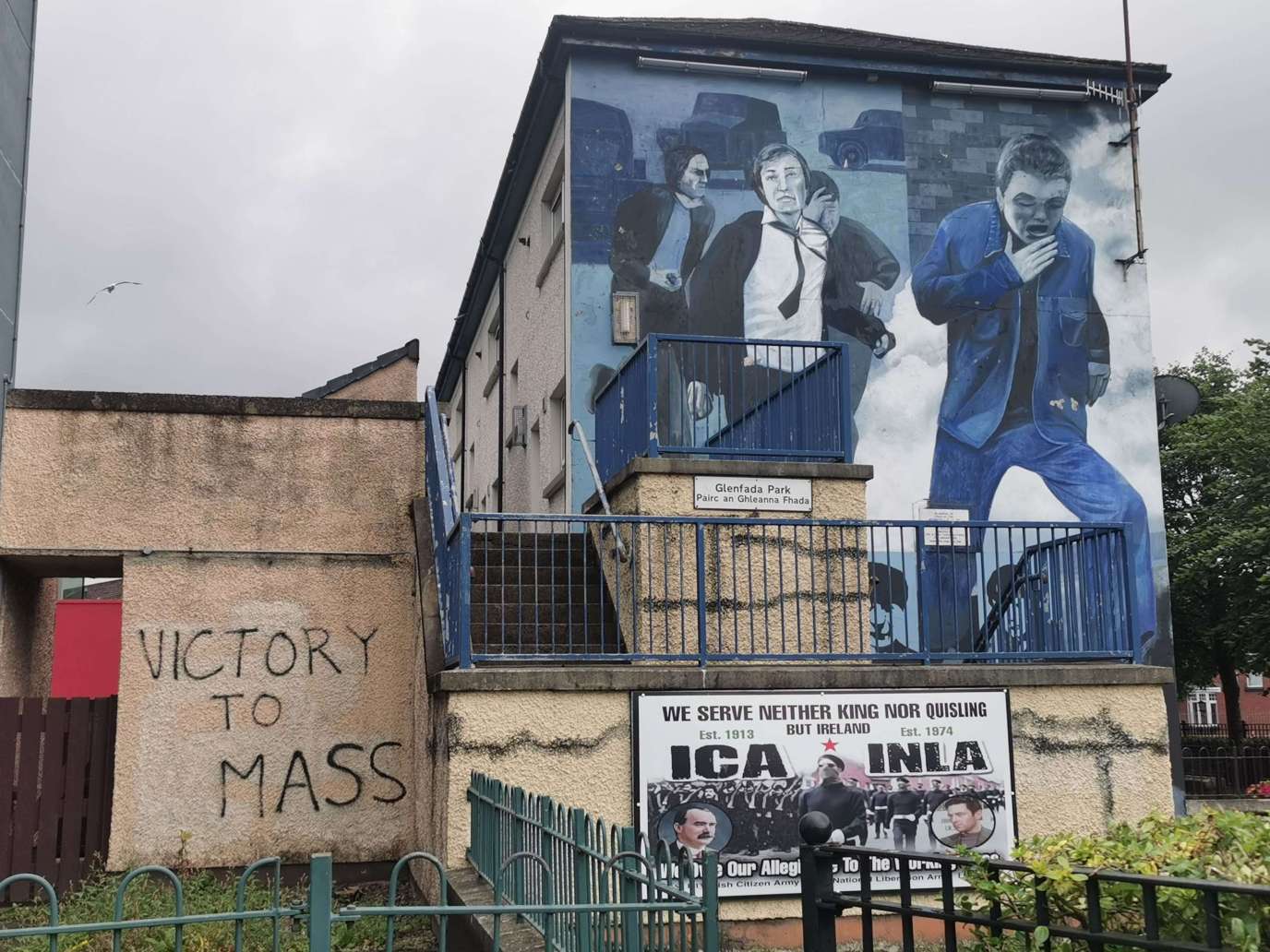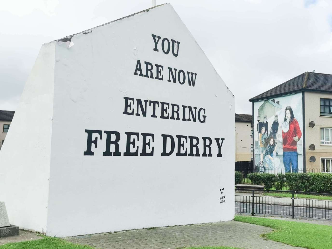 La peinture avait été réalisée illégalement en 1969 sur le flanc d'une maison. Elle signalait l'entrée d'une zone irlandaise auto-proclamée où la police britannique ne pouvait rentrer.