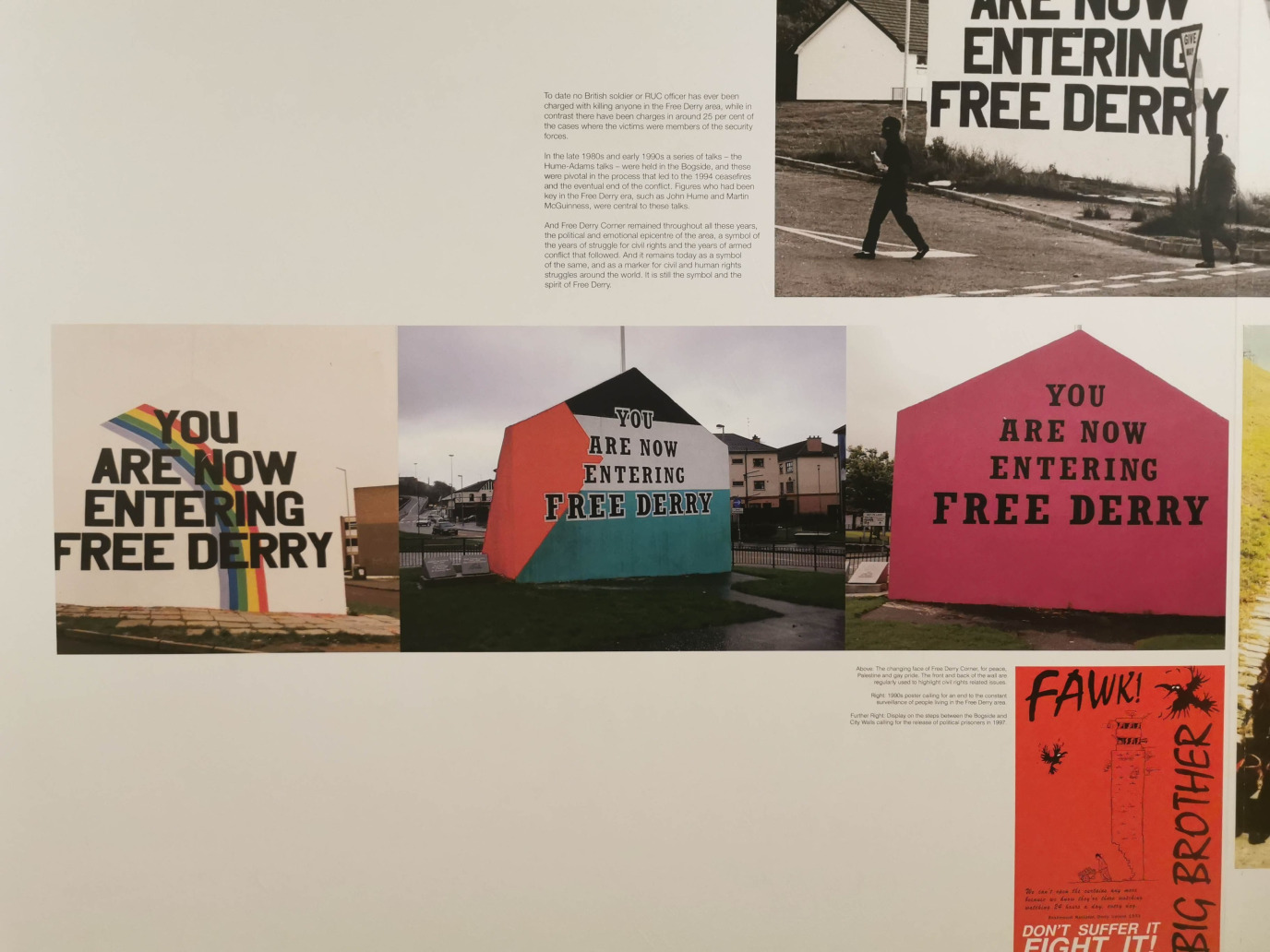 Aujourd'hui, le Musée de Free Derry s'attachait, avec grande dignité, à restituer le contexte structurel des Troubles. Il s'agissait de mettre à l'écart les intentions séparatistes ou terroristes qui avaient été prêtées aux manifestants à la suite de la répression.